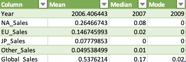 GameCo, a new video game company, wants to develop new games based on its data. To achieve this goal, needs a data analyst to provide descriptive statistics, so it can make informed choices to provide them with an understanding of how their new games might do in the video game market.